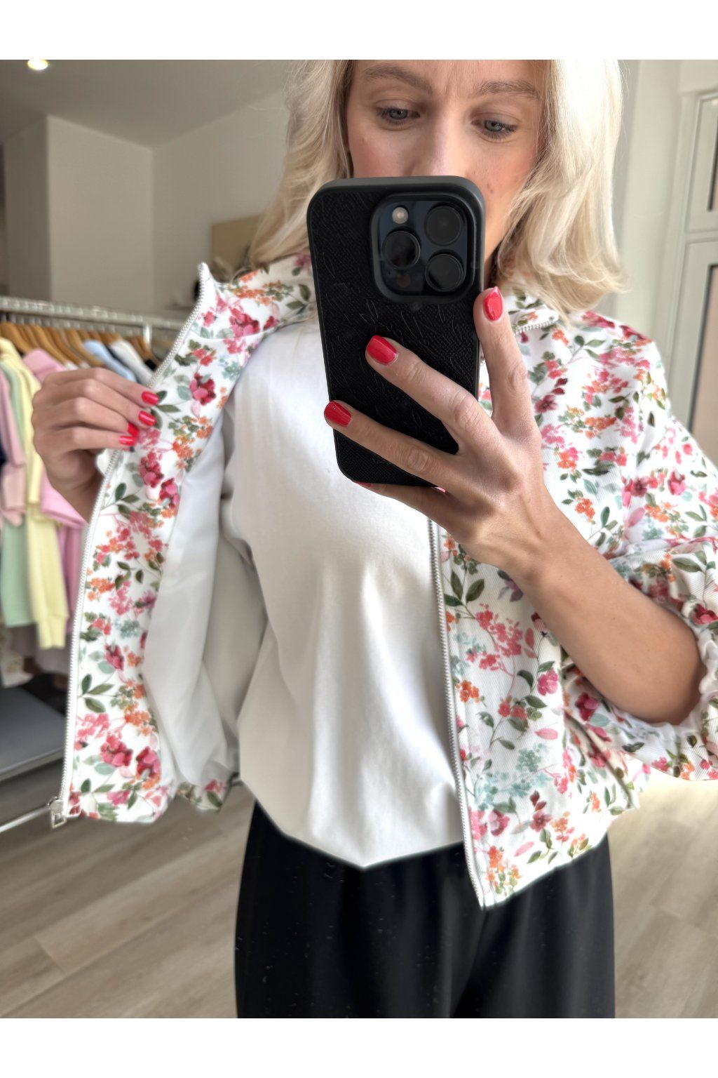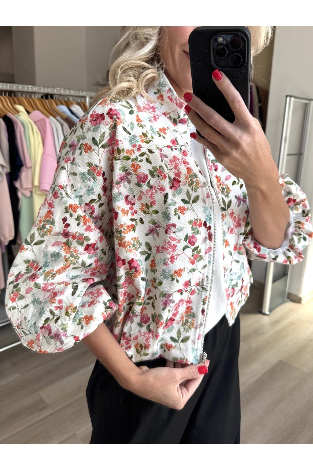 Lehký jarní bomber s vyšším límcem od značky Imperial, květinovým potiskem a moderním kratším střihem. Díky příjemnému materiálu je ideální na každodenní nošení v jarních dnech. Stylově doplní jak šaty, džíny nebo kalhoty.