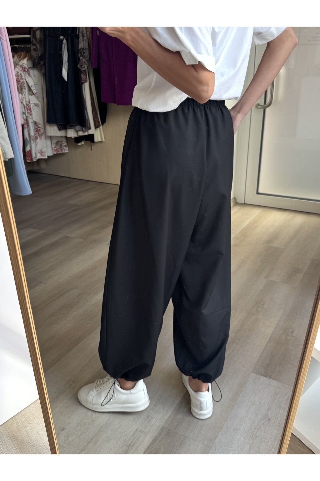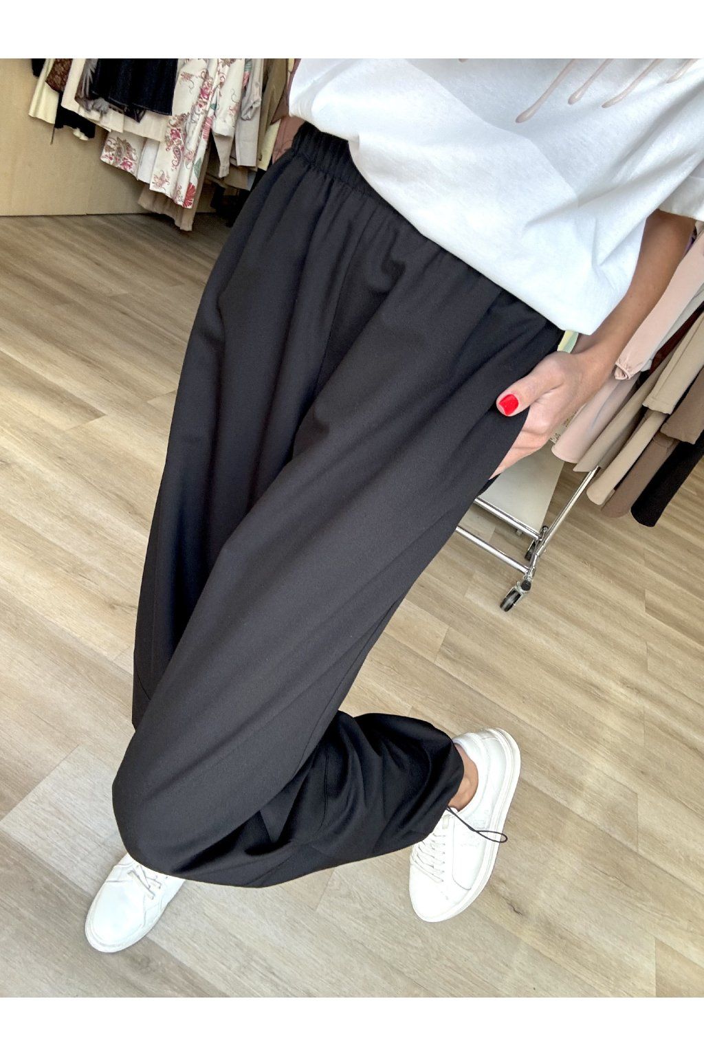Kalhoty Imperial se širokým střihem a vysokým elastickým pasem doplněným o nastavitelnou šňůrku. Minimalistický design nabízí prostor pro originální styling a je ideální volbou pro ty, kteří hledají moderní eleganci v každodenním outfitu.