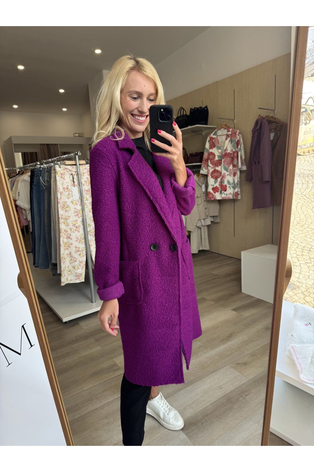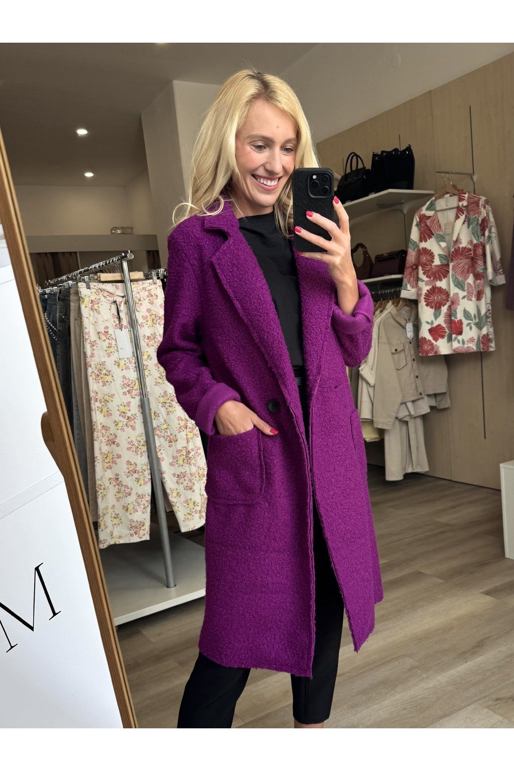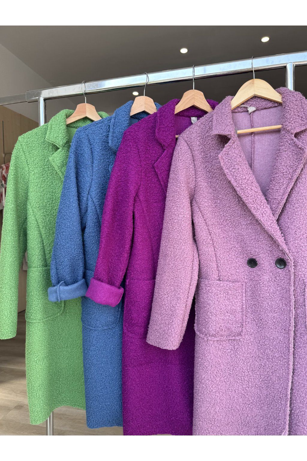 Nadčasový teddy kabátek s rovným střihem a elegantním dvouřadým zapínáním. Materiál se nežmolkuje, ani nemačká. Sedí od velikosti S až do velikosti L.