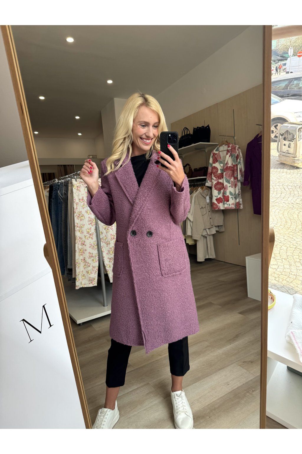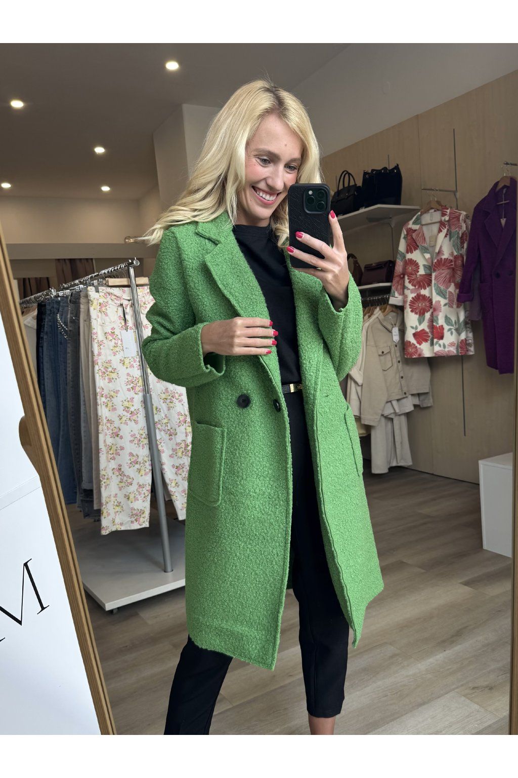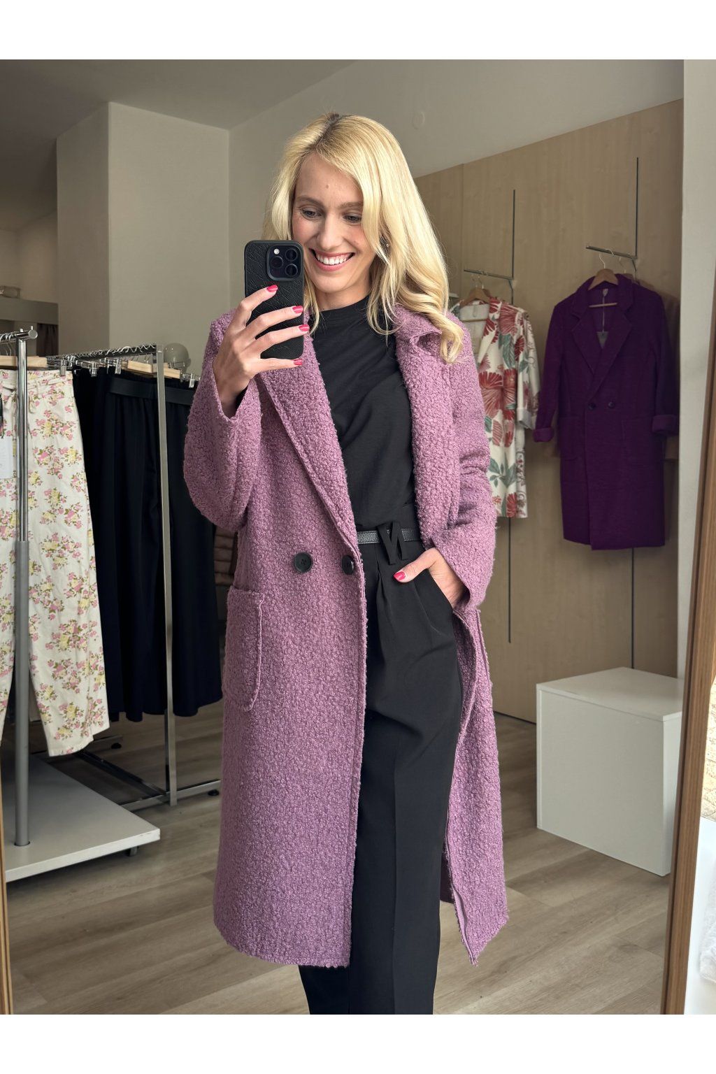 Nadčasový teddy kabátek s rovným střihem a elegantním dvouřadým zapínáním. Materiál se nežmolkuje, ani nemačká. Sedí od velikosti S až do velikosti L.